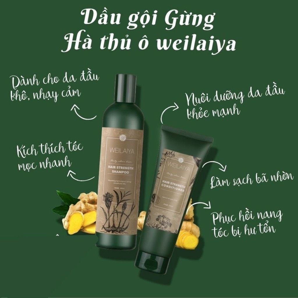 Cặp Dầu Gội Xả Hà Thủ Ô Kích Mọc Tóc Weilaiya Zingiber Officinale Juice 400ml