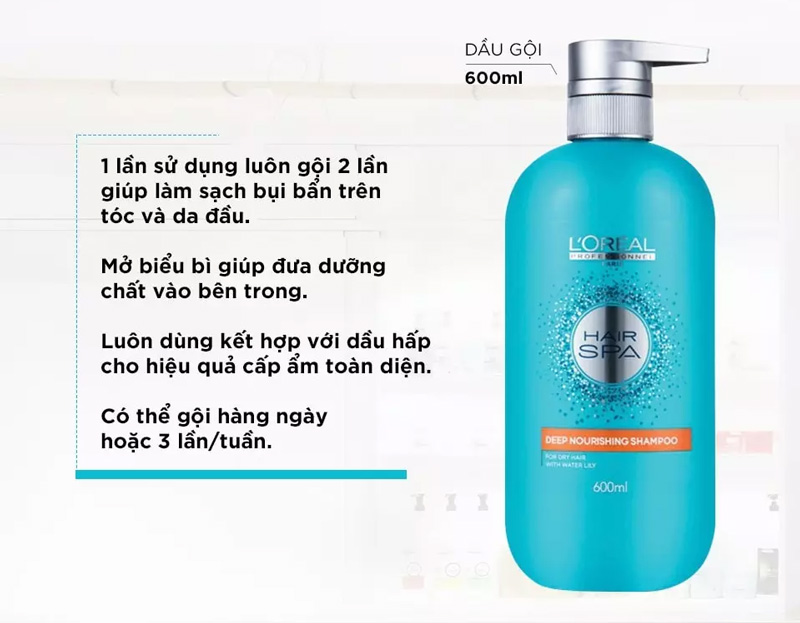 Tóc hay da đầu cũng đều cần được cấp ẩm thường xuyên. Khi da đầu thiếu ẩm, bề mặt da sẽ có hiện tượng thô ráp, sần sùi và dễ bị bong tróc dẫn đến hình thành gàu. Các sợi tóc thiếu ẩm cũng trở nên khô, mất đi độ bóng mượt tự nhiên, trông xỉn màu và thiếu sức sống. Dầu Gội L’Oréal Professionnel Hair Spa Deep Nourishing Shampoo có nồng độ tập trung các dưỡng chất cao cấp cùng nhiều dưỡng chất từ cây bông súng và nước khoáng tinh khiết, giúp nuôi dưỡng sợi tóc từ sâu bên trong.