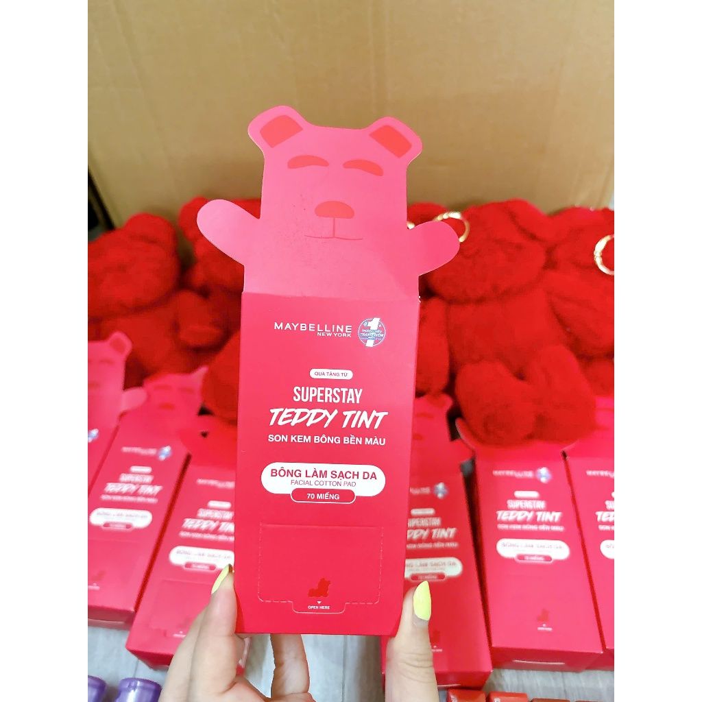 Gấu Bông Đỏ Teddy & Bông Tẩy Trang Teddy Mới Maybelline