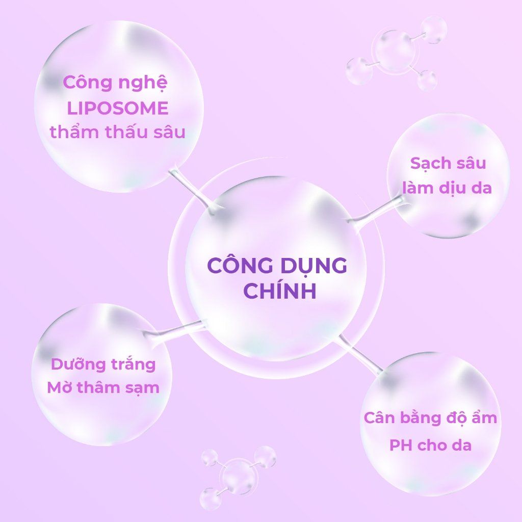 Dưỡng da, làm mềm, dịu da, chống kích ứng/ Làm mờ thâm nám, ngừa mụn, dưỡng trắng, tăng độ đàn hồi.