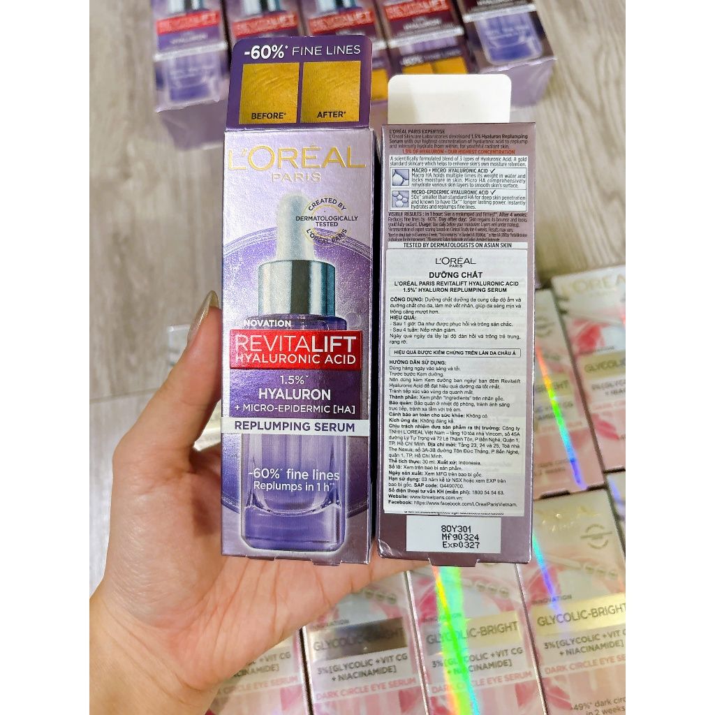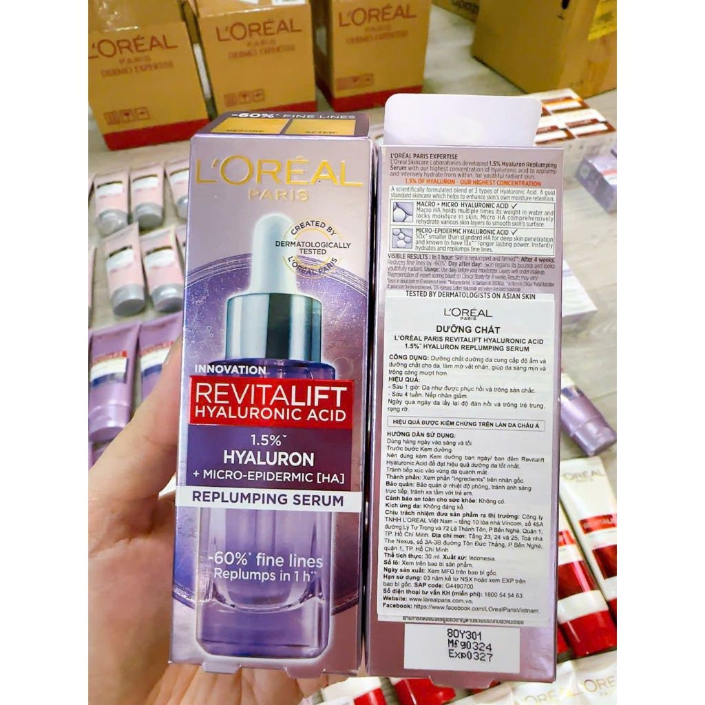 Serum L'Oreal Hyaluronic Acid 1.5% Hyaluron Cấp Ẩm Sáng Da 30ml