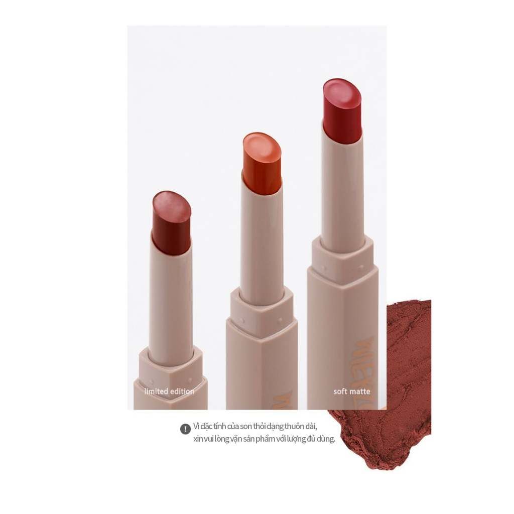 Son Thỏi Lì, Lên Màu Chuẩn, Mịn Mượt Nhẹ Môi Merzy Academia Cotton Lipstick 1.8g