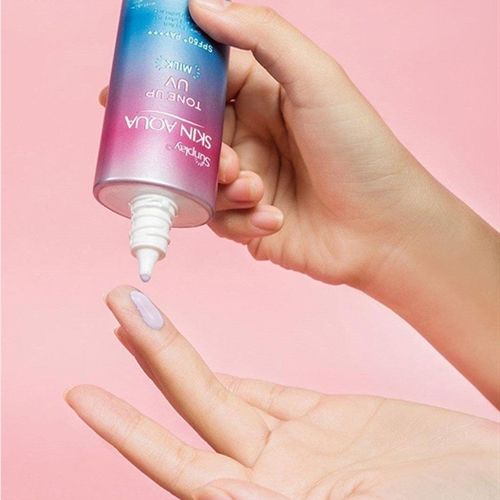 - Sunplay Skin Aqua Tone Up UV Milk Lavender dành cho da vàng, tối màu, với chất kem màu tím độc đáo, được kết hợp từ sắc hồng và xanh dương, giúp hiệu chỉnh và nâng tone da trở nên sáng hồng trong suốt, đồng thời dưỡng ẩm và kiềm dầu cực đỉnh.