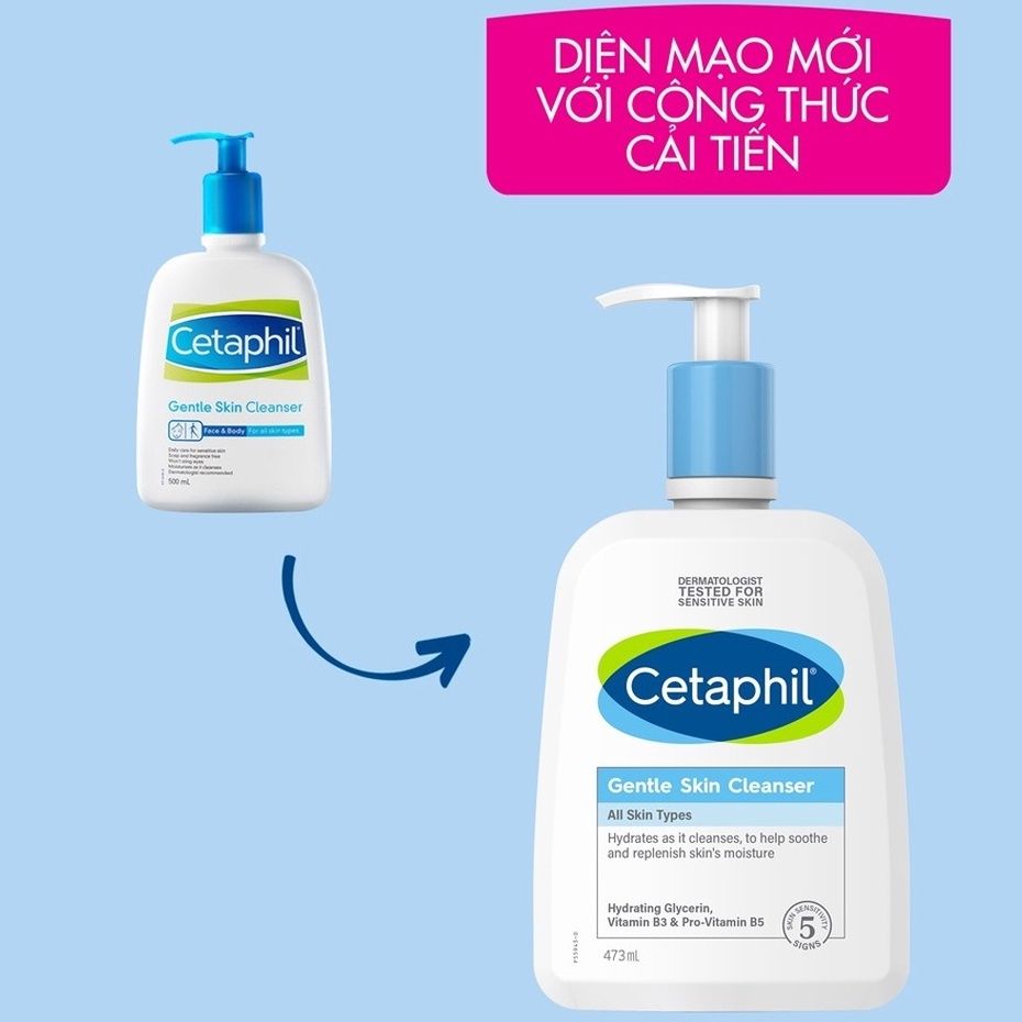 NEW: Phiên bản mới nhất của Sữa Rửa Mặt Cetaphil Gentle Skin Cleanser với công thức cải tiến được bổ sung thêm Niacinamide (vitamin B3), Panthenol (vitamin B5) và thành phần dưỡng ẩm Glycerin giúp cung cấp độ ẩm liên tục nhằm bảo vệ làn da khỏi tình trạng khô căng, thô ráp, đồng thời giữ da ẩm mịn sau khi rửa mặt.