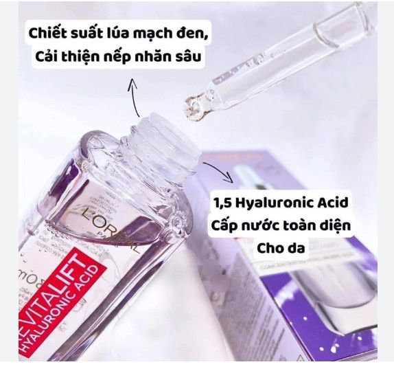 Tinh Chất Siêu Cấp Ẩm Sáng Da L'Oreal Paris Revitalift 1.5% Hyaluronic Acid Serum là dòng sản phẩm serum đến từ thương hiệu L'Oréal Paris nổi tiếng của Pháp, với sự kết hợp không chỉ 1 mà đến 2 loại Hyaluronic Acid ưu việt ở nồng độ 1.5% sẽ là giải pháp chăm sóc da hiệu quả dành cho làn da khô & lão hóa, giúp cung cấp độ ẩm tối đa cho da căng mịn và tươi sáng tức thì. Với Revitalift HA đậm đặc, làn da sẽ có sự thay đổi rõ rệt, mang đến vẻ ngoài rạng rỡ cho bạn.